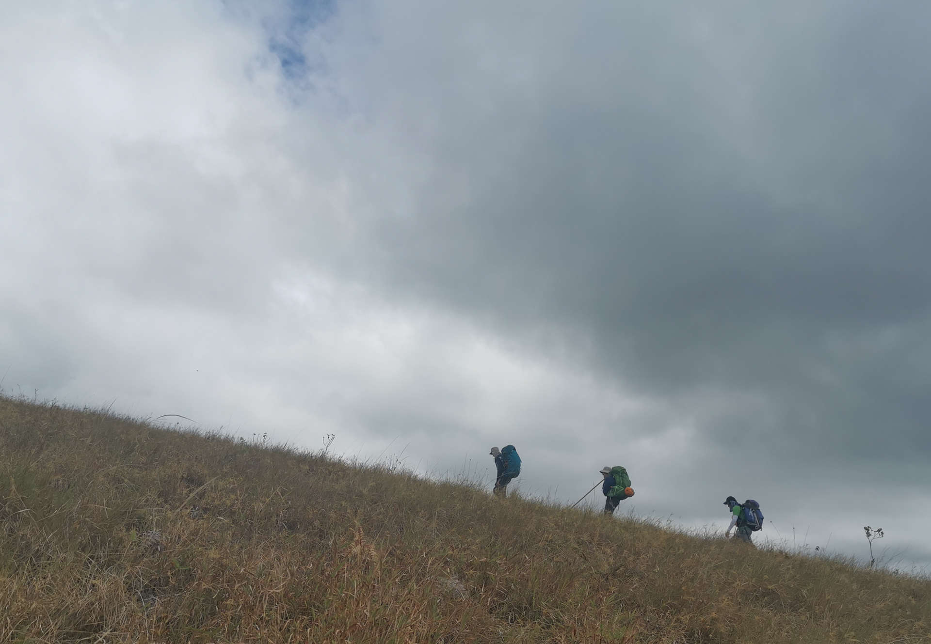 Pasamos el cerro Tebe con su hito, cruzamos el cerro Platanillo y llegamos a la línea divisoria, dejamos el Pacífico e ingresamos al Caribe, empezamos en Puntarenas y ya estábamos en Limón, atravesando una vez más una parte de la gran cordillera de Talamanca, la montaña se empezaba a oscurecer, hicimos una bajada y al ser las 5 pm llegamos al punto donde íbamos a acampar. Instalamos las hamacas y tienda rápidamente, luego a preparar la cena. Ellos cocinaban y yo los grababa, normalmente no cocino, mi comida es fría porque cambio el peso y espacio de ollas por equipo para documentar la gira, aunque en muchas ocasiones van de paseo por mal clima, pero tenía la fe de seguir documentando la gira, de momento todo iba de maravilla.